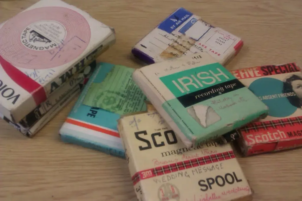 Some of the 1/4 inch tapes were marketed by companies such as Scotch and EMI specifically to be used as ‘voice letters’ that ‘links absent friends’. Despite this Pimm-Smith said that making such recordings was pretty rare, something ‘quite out there’ for most people. Brian’s mother nonetheless embraced the activity, as they shared correspondence back and forth between wherever they lived at the time.