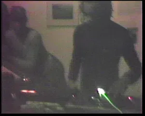 It was a JVC portable VHS recorder I was using on the night of the Wild Bunch jam at the Arnolfini on Friday 19 July 1985, the case slung over my shoulder while I held a crap Hitachi single-tube camera with a misted-over viewfinder whose murky B&W picture meant you were never entirely sure whether it was on manual or auto focus. There was no tripod, and no lighting; just me and a Foundation student, Jo Evans, helping out. The original camera tape, which I recently found after presuming it lost, is a Scotch 3M 60-minuter and the video document of the event, such as it is, lasts only until the single tape runs out, which is just about the time the Wild Bunch’s rappers, Claude and 3D, are getting started.